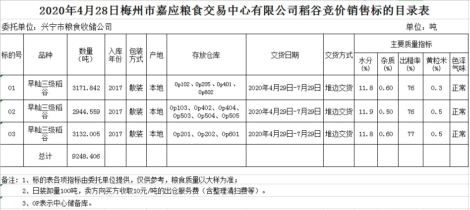 受客戶委托,梅州市嘉應糧食交易中心有限公司定于2020年4月28日(星期二)舉辦糧食競價交易會,興寧市糧食收儲公司擬銷售2017年早秈稻9248.406噸。