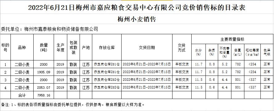2022年6月21日梅州市嘉泰糧食和物資儲備有限公司小麥銷售