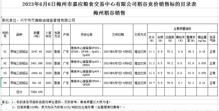 受客戶(hù)委托,梅州市嘉應(yīng)糧食交易中心有限公司定于2023年6月6日(星期二)舉辦糧食競(jìng)價(jià)交易會(huì)。興寧市齊昌糧油儲(chǔ)備管理有限公司擬銷(xiāo)售2020年、2021年早秈稻7999.476噸。