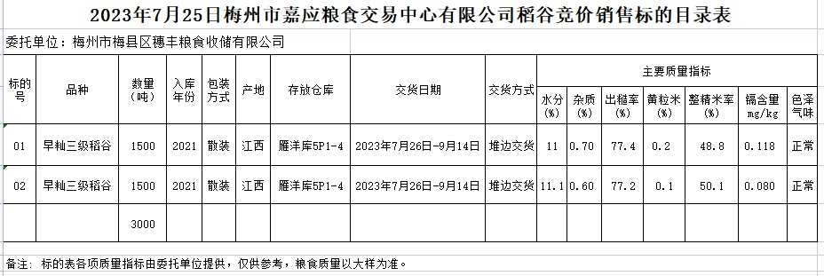 2023年7月25日梅州市梅縣區(qū)穗豐糧食收儲有限公司稻谷銷售