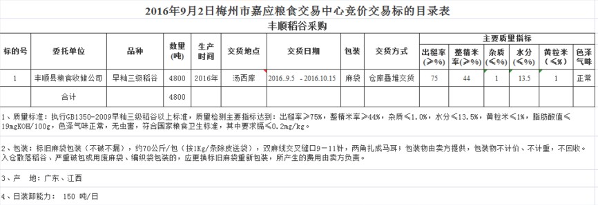交易地點(diǎn):廣東省梅州市梅江區(qū)彬芳大道南161號(hào)梅州市糧食交易中心3樓。