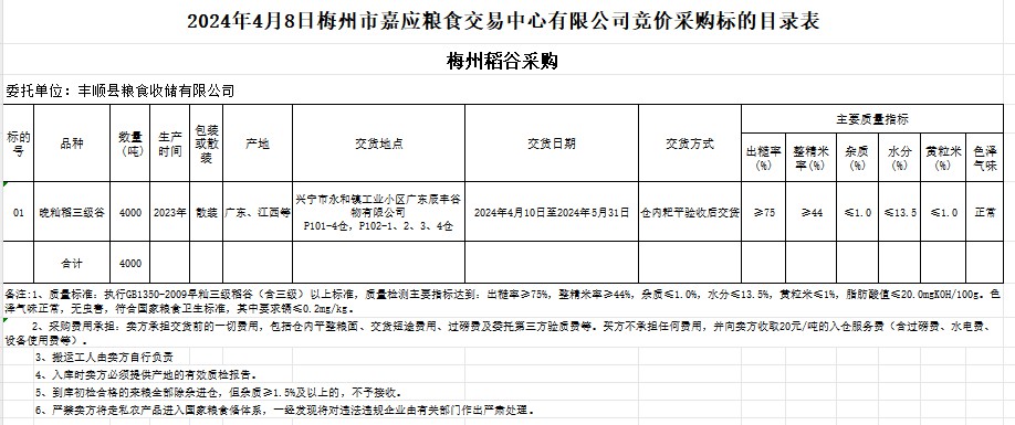 2024年4月8日豐順縣糧食收儲(chǔ)有限公司稻谷采購(gòu)