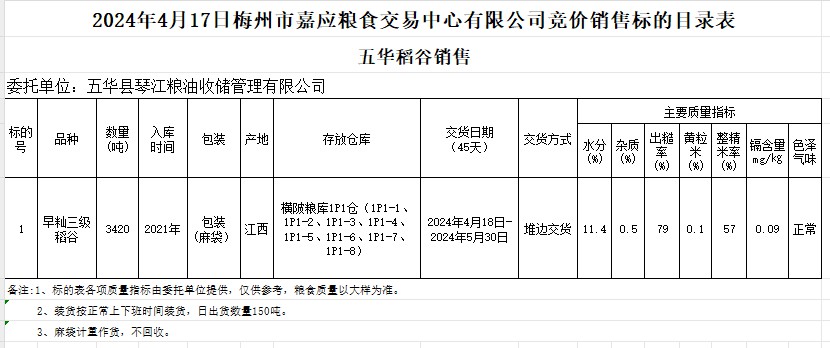 三、交易資格:在梅州市嘉應糧食交易中心有限公司成功報名并提供單位有關資料的單位。