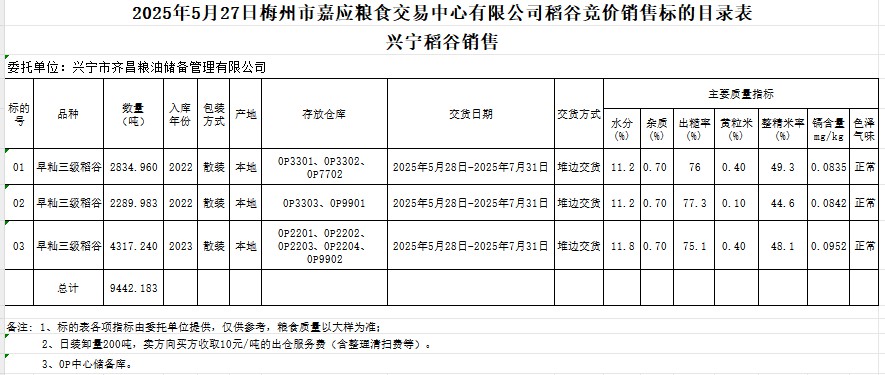 2025年5月27日興寧市齊昌糧油儲備管理有限公司稻谷銷售